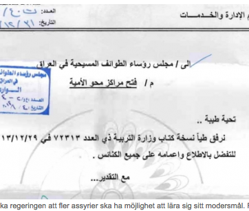 Det irakiska parlamentet antog i början av veckan en lag som gör det assyriska språket till ett av tre officiella språk i landet....