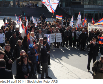 Flera hundra assyrier deltog i manifestationen under söndagen för att visa solidaritet med sina landsmän i irakiska Assyrien och uppmärksamma Sverige på vad som håller på att ske på Nineveslä...